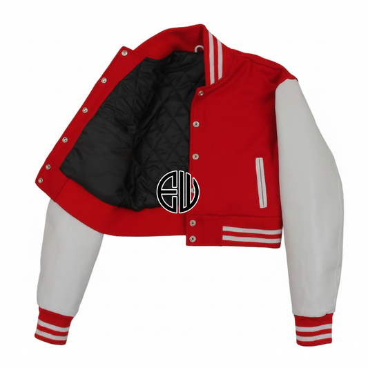 Red Wool White Leather Cropped Body Varsity Baseball Letterman Jacket