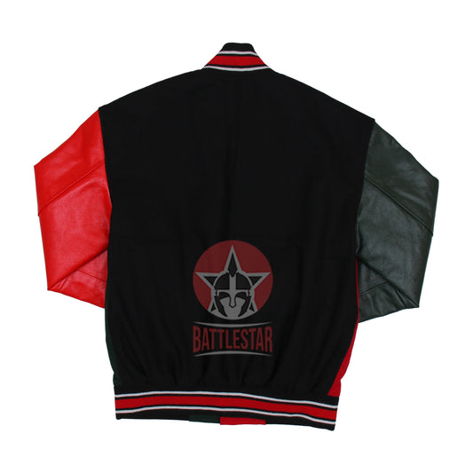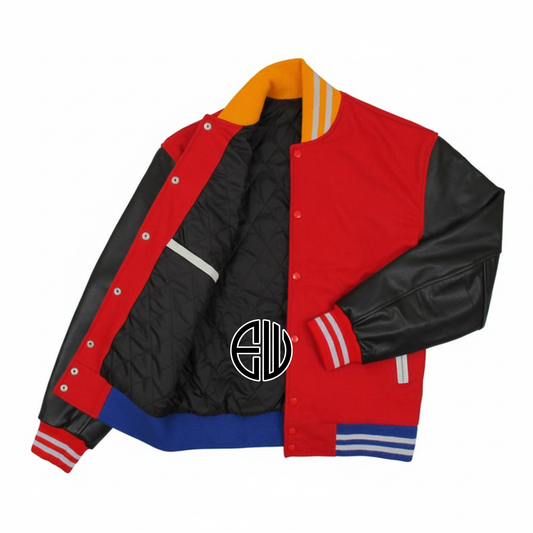 Red Wool Black Leather Varsity Baseball Jacket