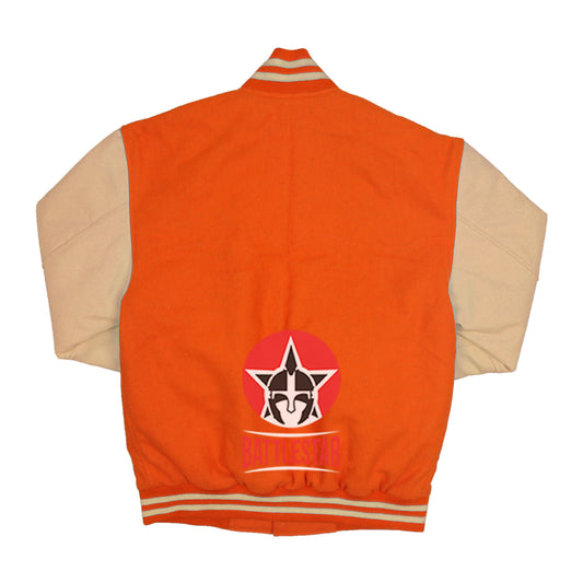 Orange Wool Cream Leather Sleeves Varsity Jacket