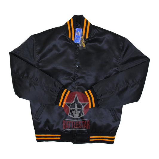 Black & Gold Satin Varsity Baseball Jacket