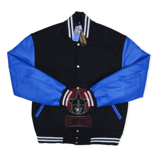 Black Wool Blue Leather Varsity Baseball Classic Jacket