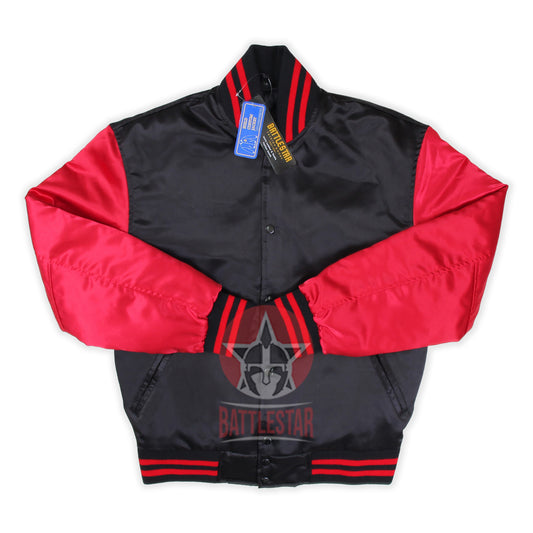 Black Cardinal Red Satin Varsity Baseball Jacket