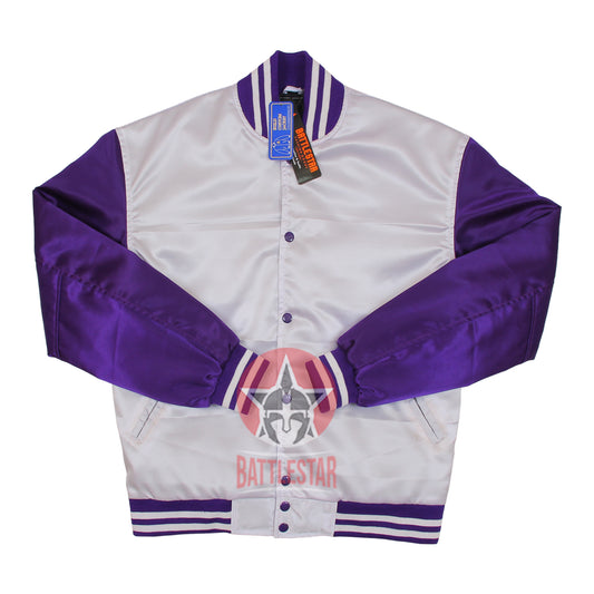 Purple Satin Varsity Baseball Jacket Purple White Rib