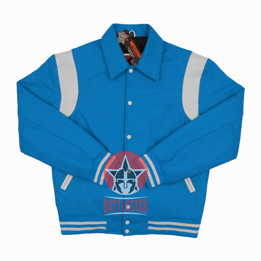 Byron Collar Sky Blue Wool White Leather Stripes Varsity Baseball Jacket