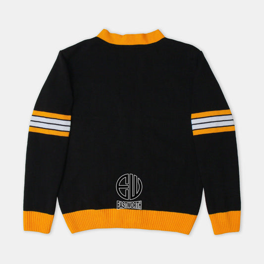 Handmade Unisex Jacquard Knitted Black & Gold Yellow Cardigan School College Graduation Greek Sweater