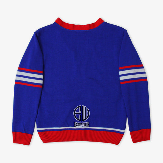 Handmade Unisex Jacquard Knitted Royal Blue & Red Cardigan School College Graduation Greek Sweater