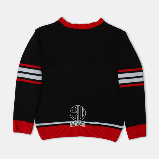 Handmade Unisex Jacquard Knitted Black & Red Cardigan School College Graduation Greek Sweater