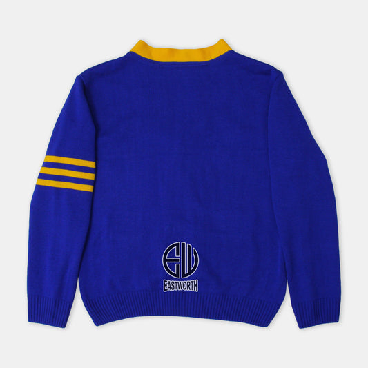 Handmade Unisex Jacquard Knitted Royal Blue & Yellow Cardigan School College Graduation Greek Sweater