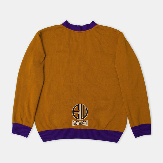 Handmade Unisex Jacquard Knitted Old Gold & Purple Cardigan School College Graduation Greek Sweater