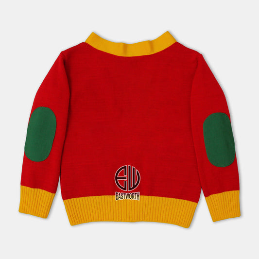 Handmade Unisex Jacquard Knitted Red & Gold Yellow Cardigan School College Graduation Greek Sweater