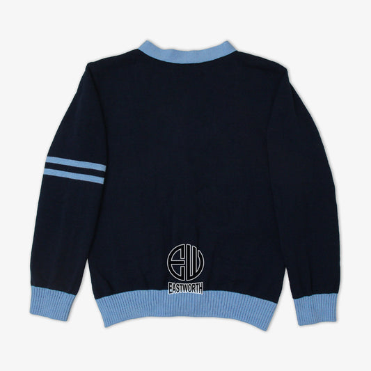 Handmade Unisex Jacquard Knitted Navy Blue- Sky Blue Cardigan School College Graduation Greek Sweater