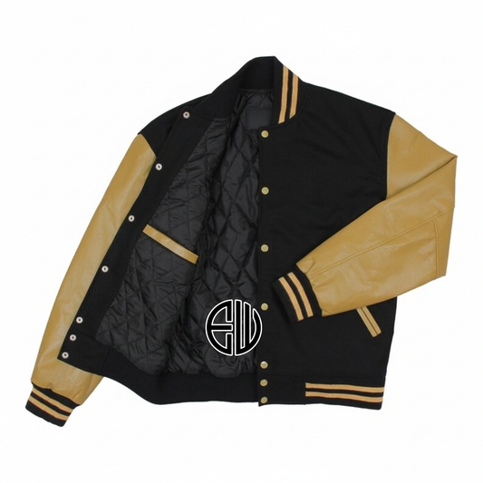 Black Wool Tan Leather Varsity Baseball Classic Jacket