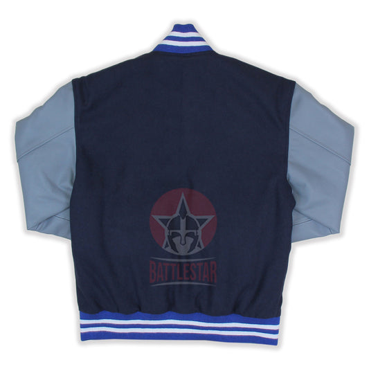 Navy Blue Wool & Leather Baseball Bomber Varsity Jacket