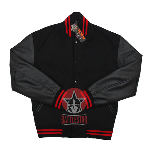 Black Wool Black Leather Varsity Baseball Classic Jacket