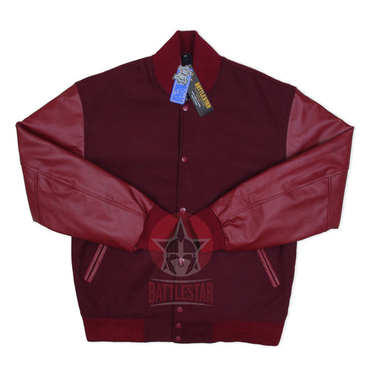 Maroon Wool Body Red Leather Sleeves Varsity Baseball Jacket