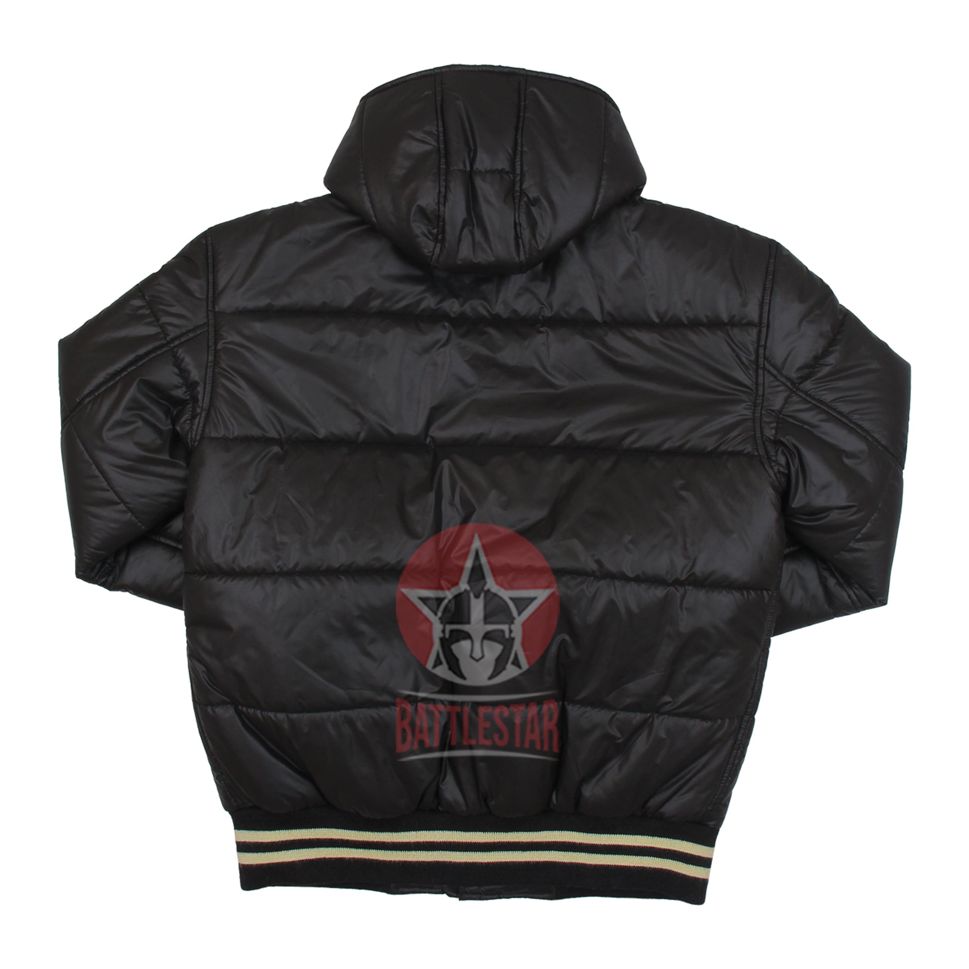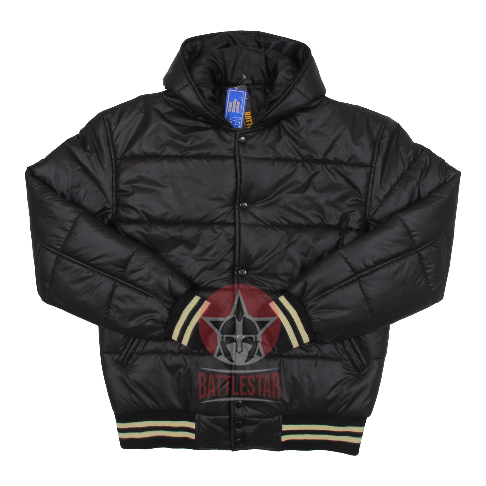 Black Unisex Lightweight Hooded Puffer Varsity Baseball Jacket