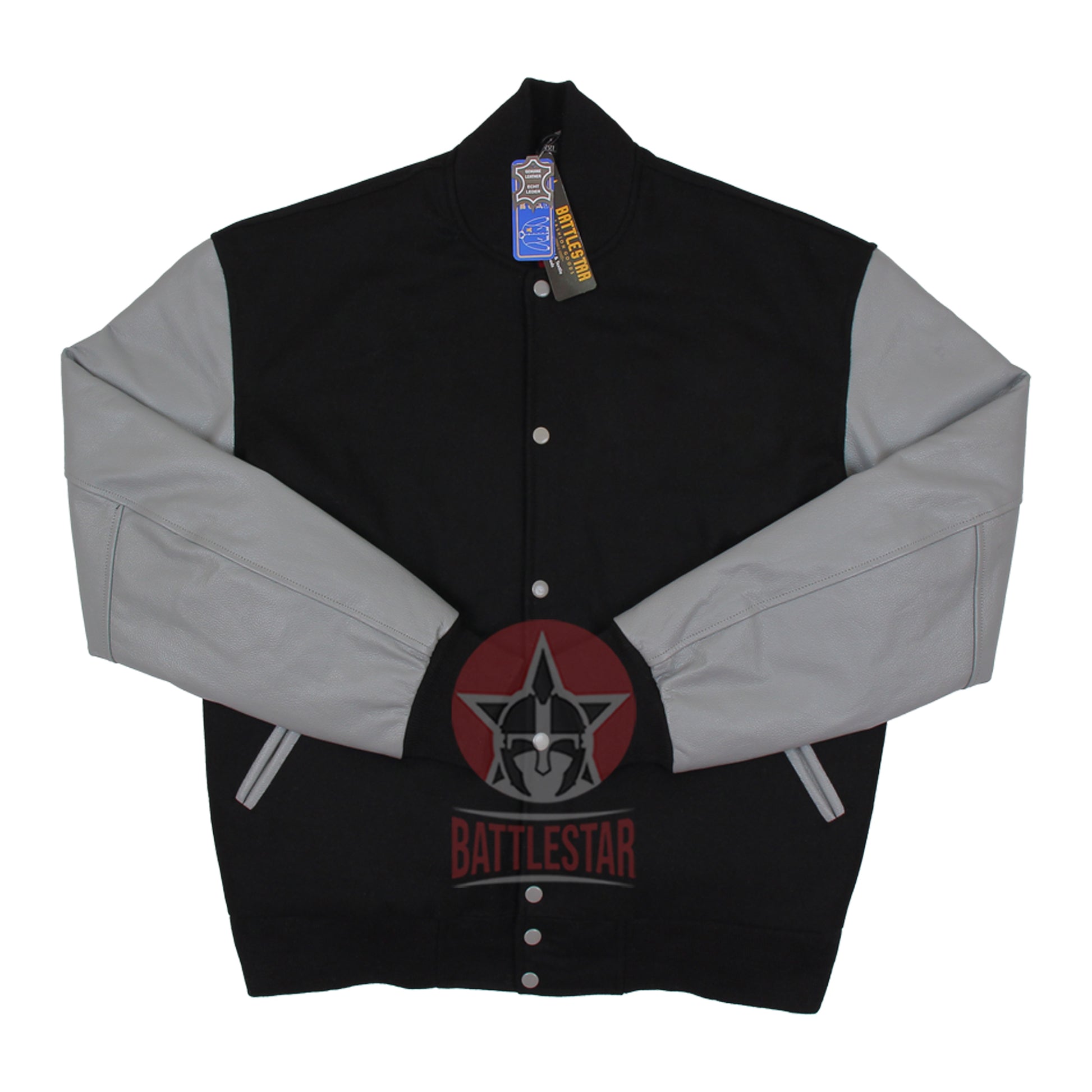 Black Wool Gray Leather Varsity Baseball Letterman Jacket
