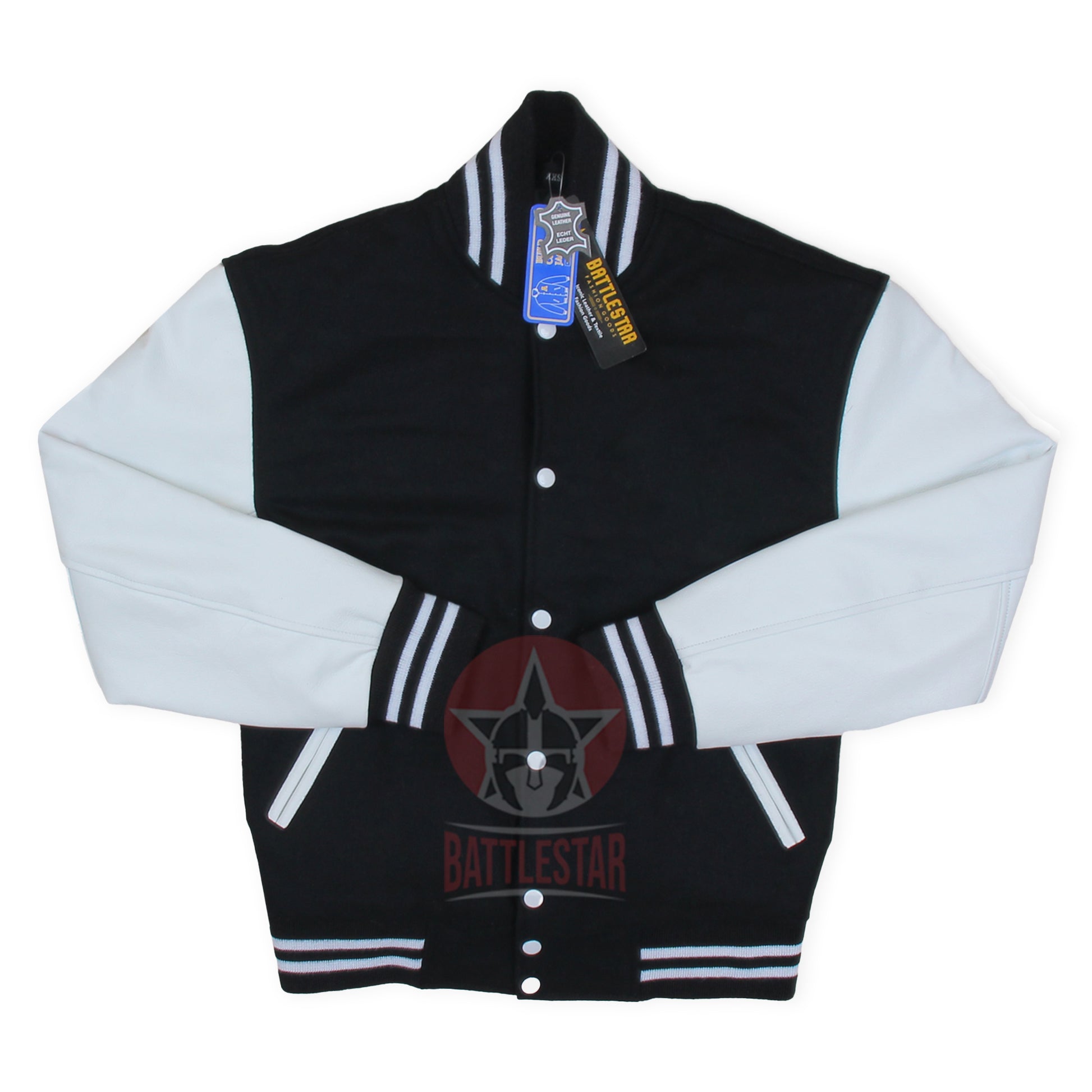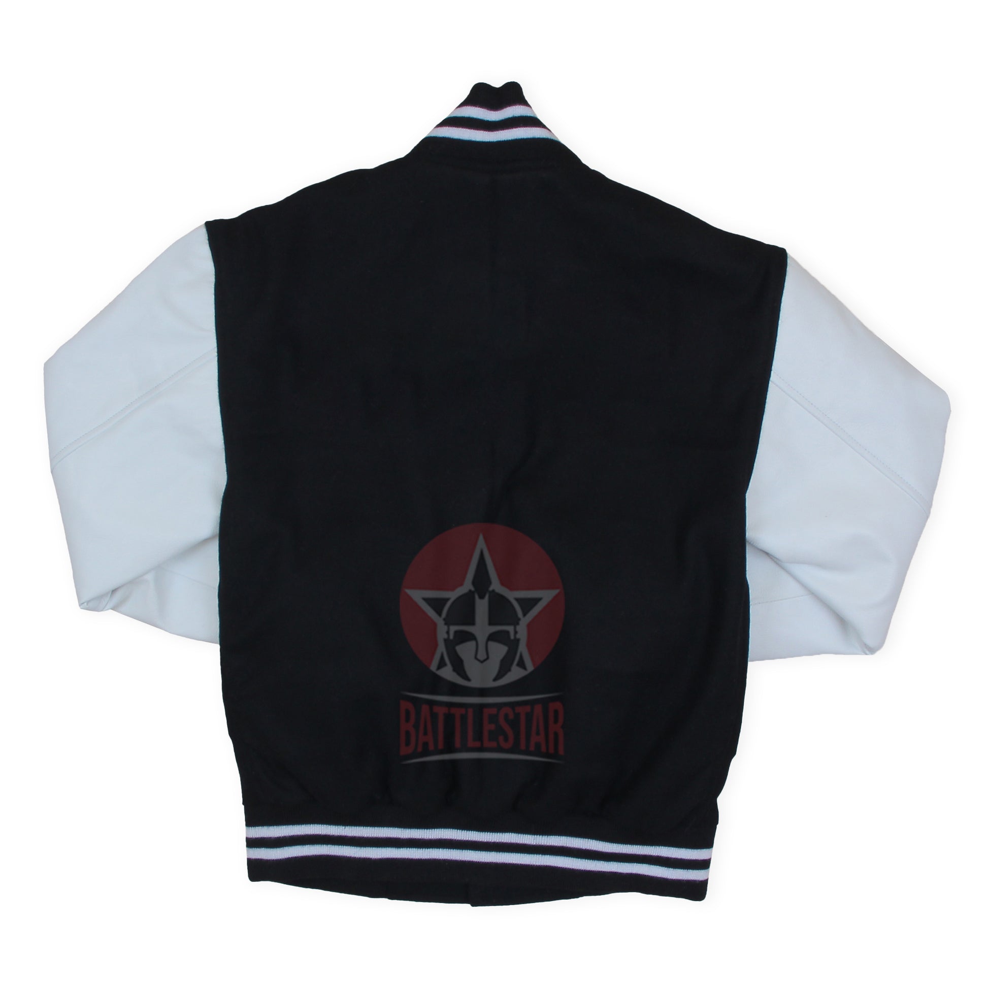 Black Wool White Leather Sleeves Varsity Baseball Jacket