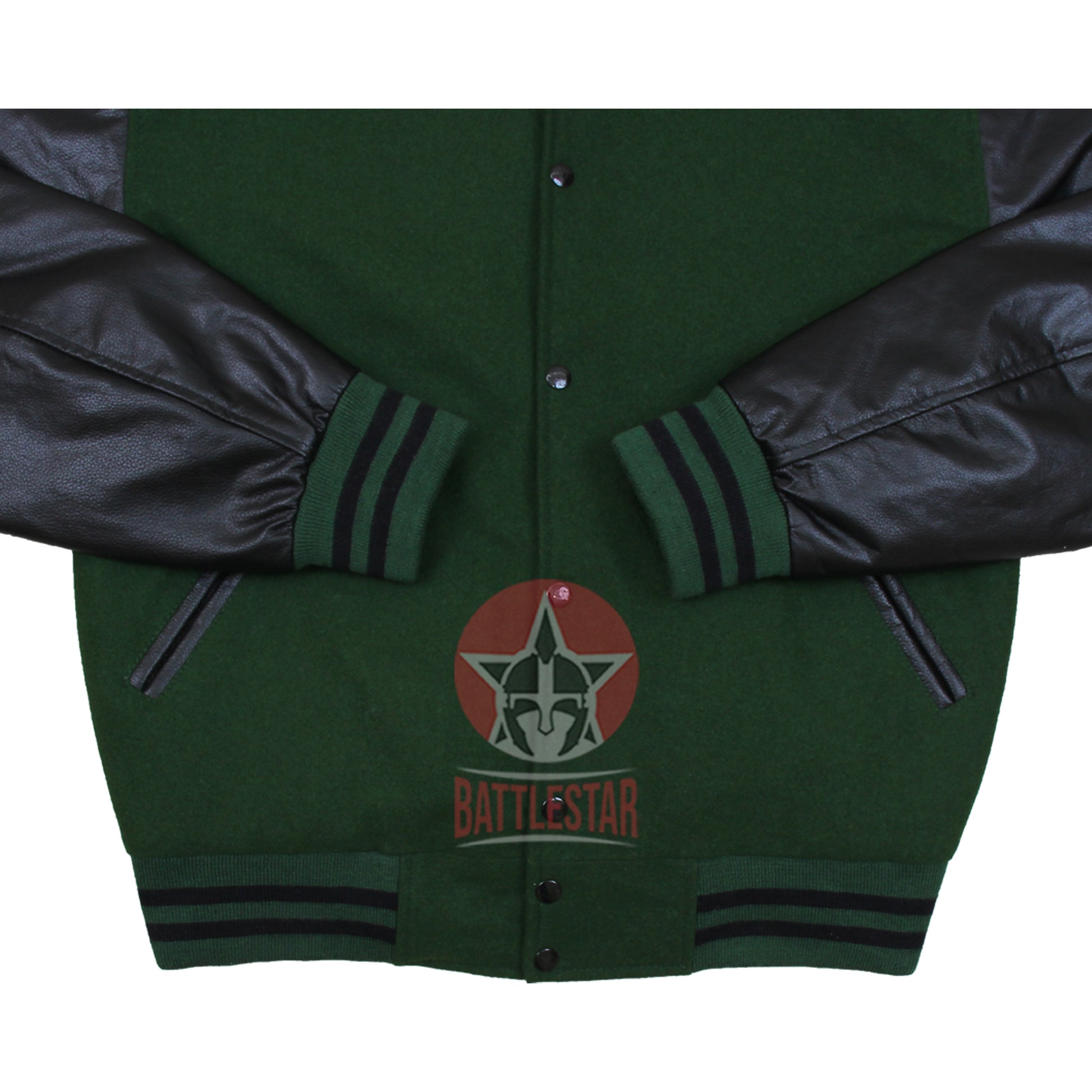 Forest Green Wool Black Leather Varsity Baseball Bomber Jacket