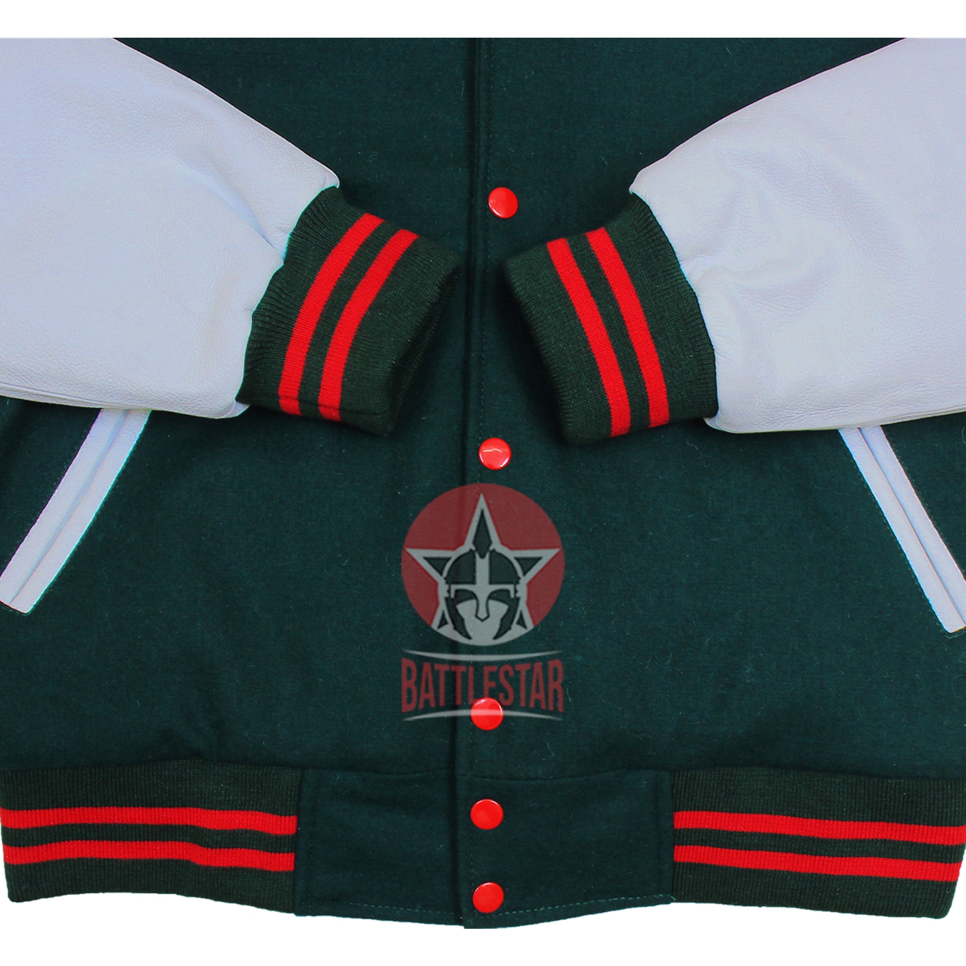 Forest Green Wool White Raglan Leather Sleeves Varsity Jacket