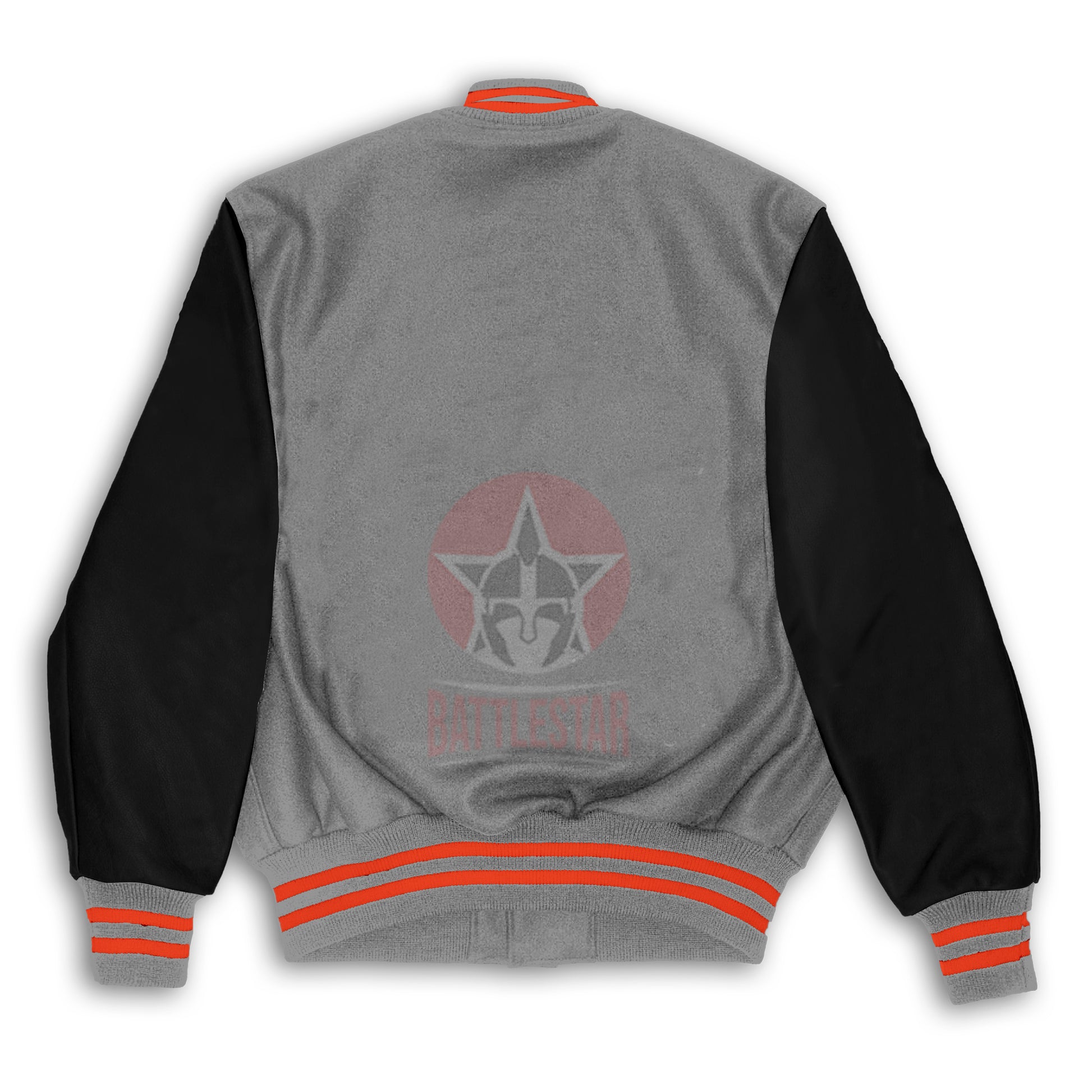 Gray Wool Black Leather Sleeves Varsity Baseball Jacket