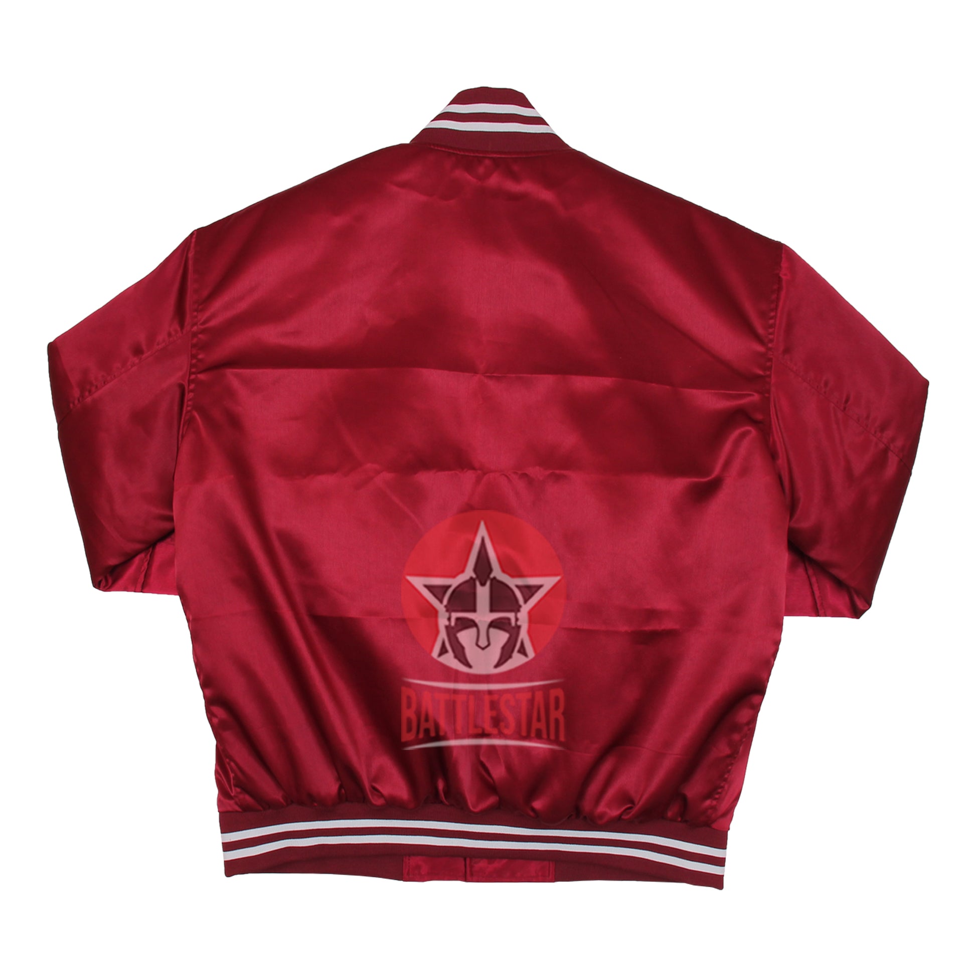 Maroon Satin Varsity Baseball Jacket Maroon white Rib