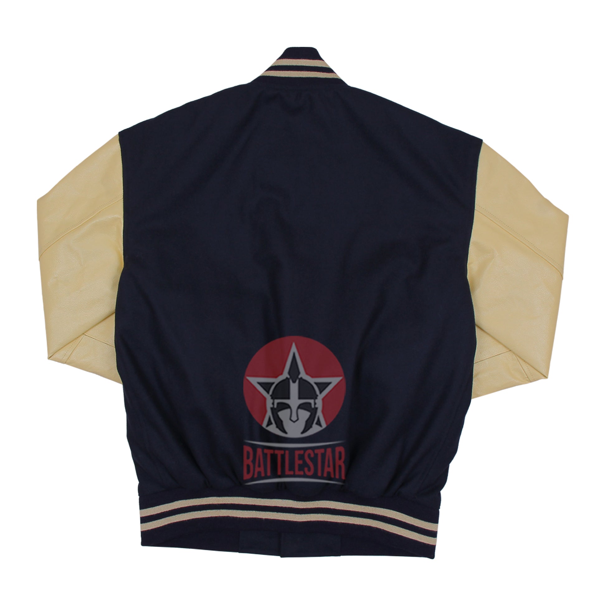 Navy Blue Wool Cream Leather Sleeves Varsity Jacket