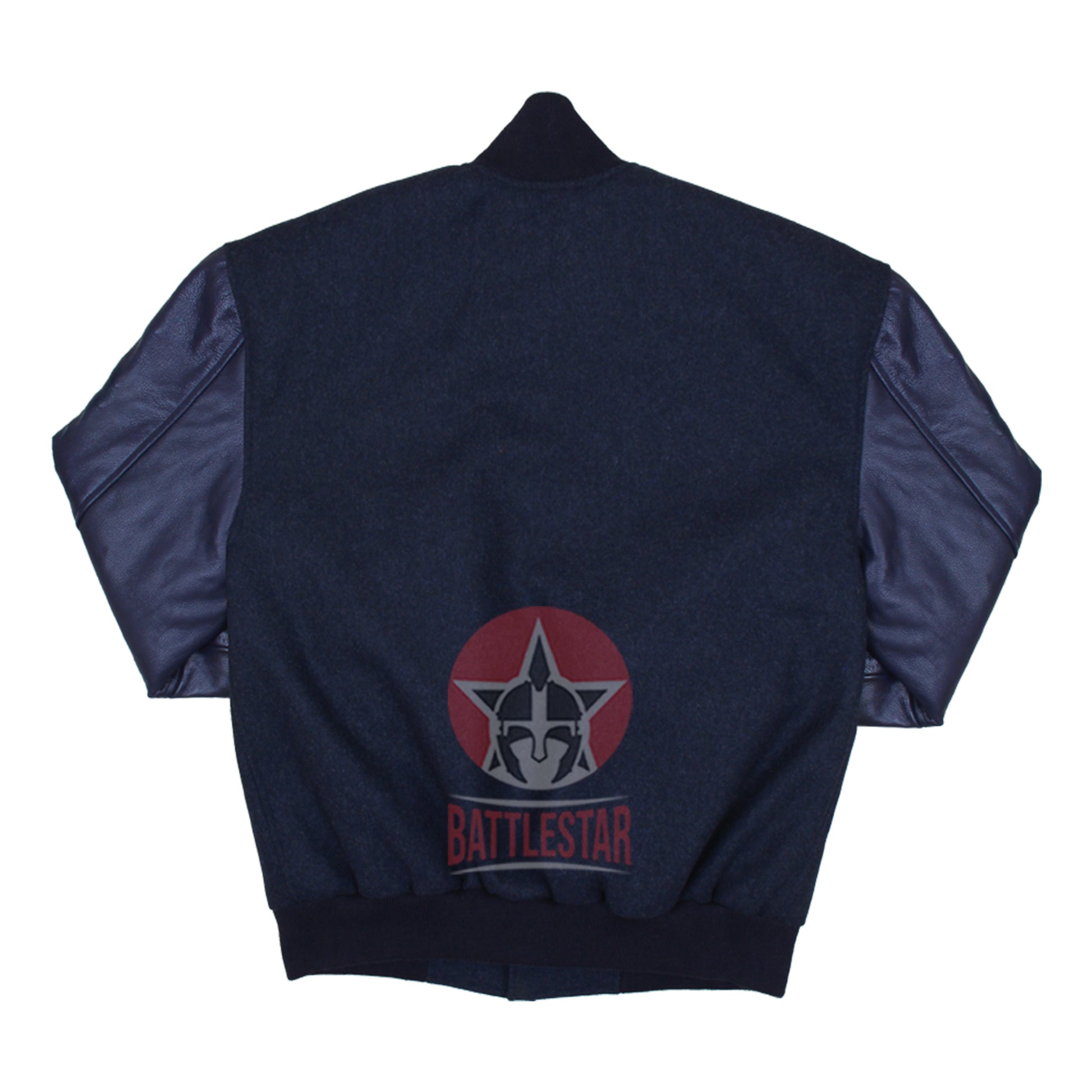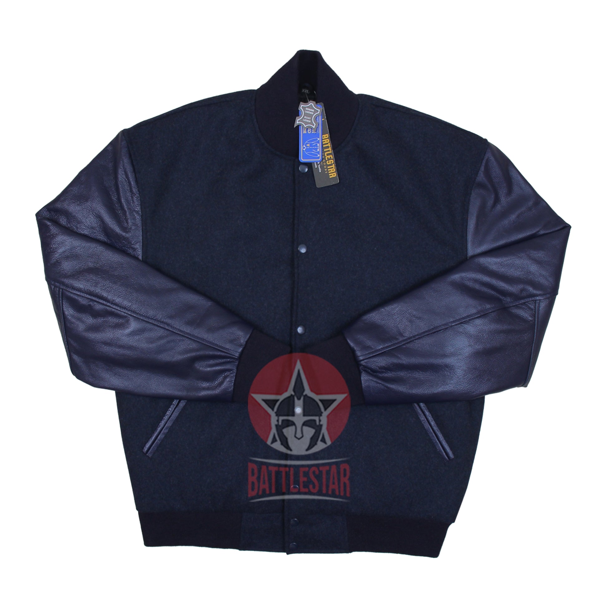 Navy Blue Wool & Leather Baseball Bomber Varsity Jacket