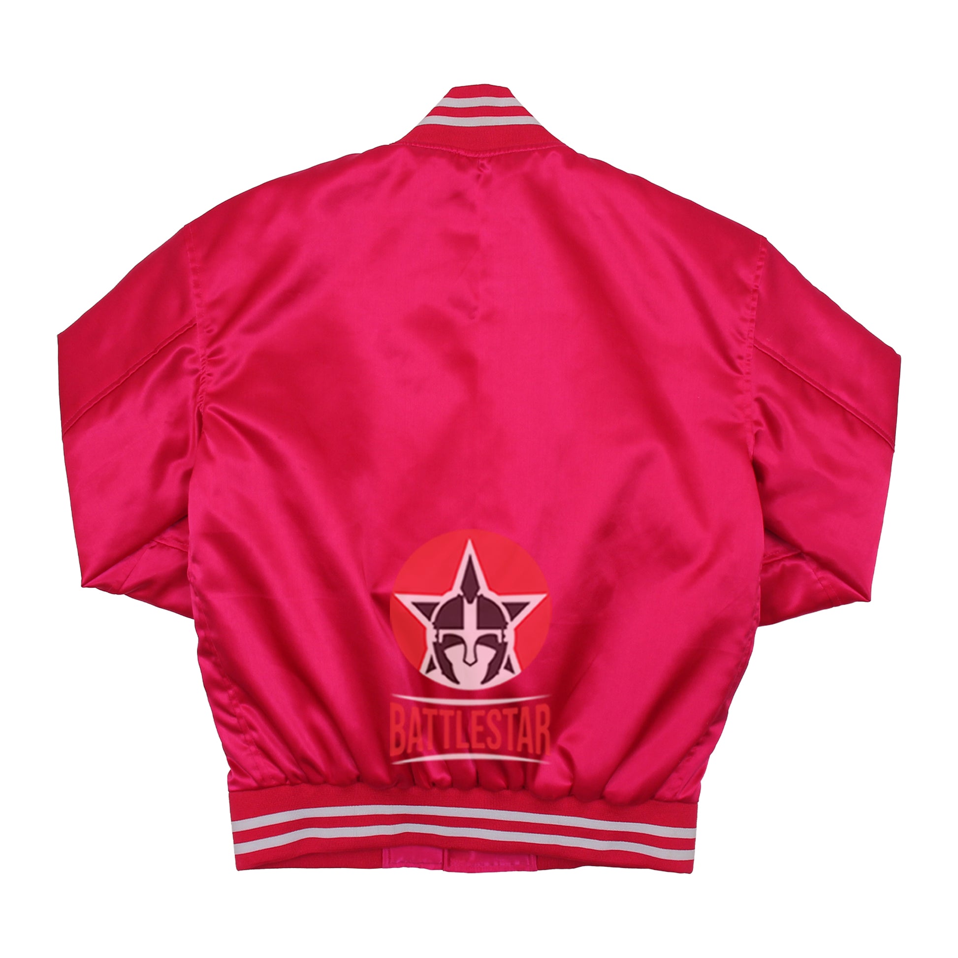 Pink Satin Varsity Baseball Jacket Pink White Rib