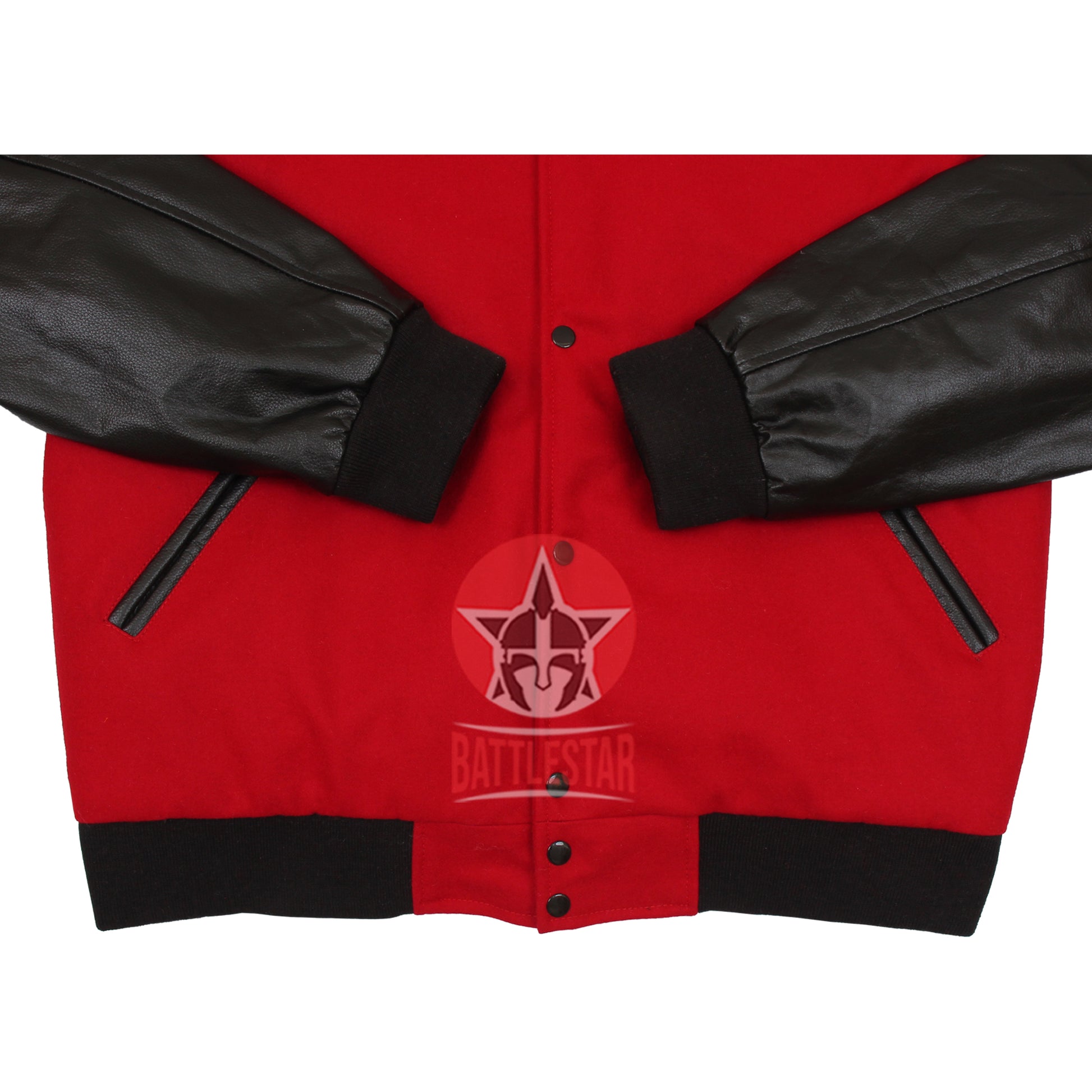 Red Wool Black Leather Baseball Bomber Letterman Varsity Jacket