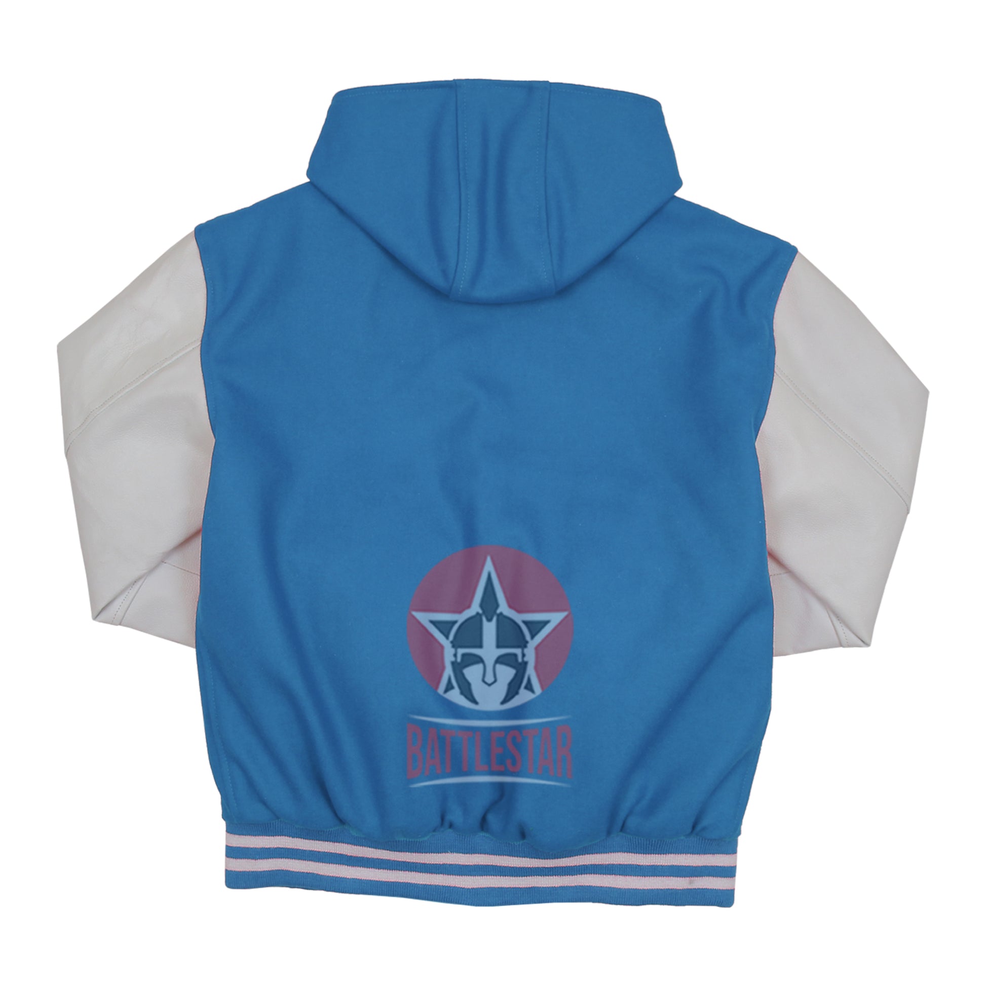 Sky Blue Wool White Leather Hooded Baseball Letterman Varsity Jacket