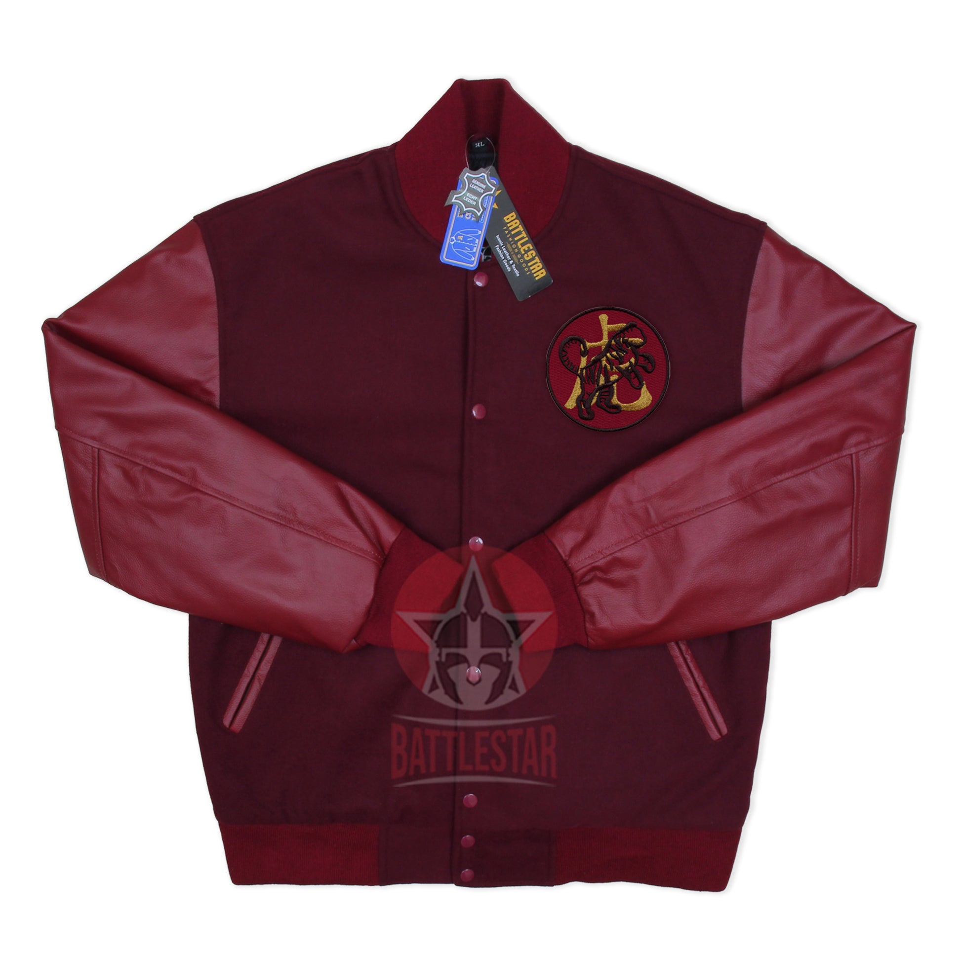 Year of the Tiger Embroidered Maroon Letterman Baseball Jacket